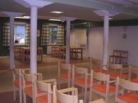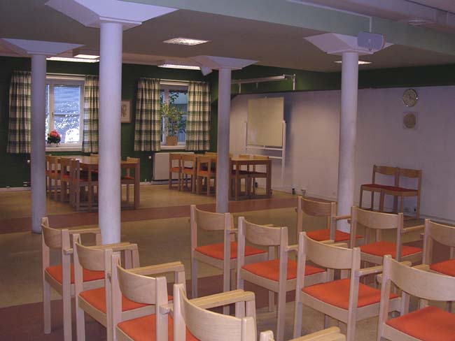 Pelarsalen I stora salen ryms 80 personer, 55 vid möblering med bord. Servis finns för 50. Här finns hörslinga, konferensutrustning och piano. I anslutning till salen finns också ett mötesrum för 8 personer. En bra lokal för möten och utbildningar. Den kan också användas som tillfällig försäljningslokal. |